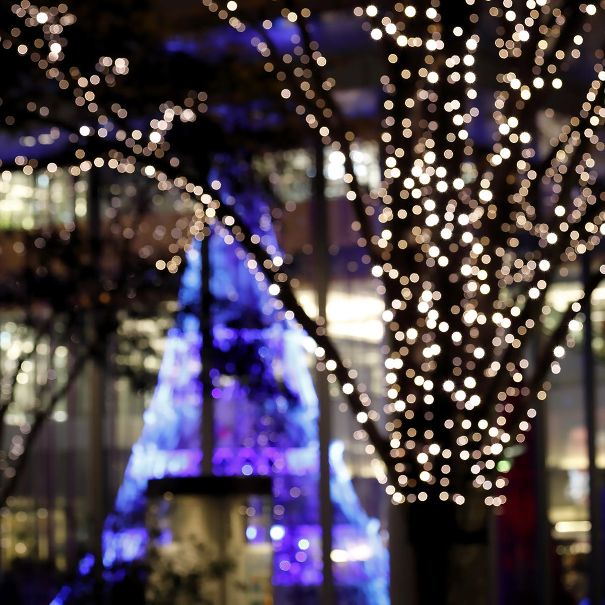 撮影地:東京都千代田区 イルミネーションの季節。にぎやかな街を歩く。