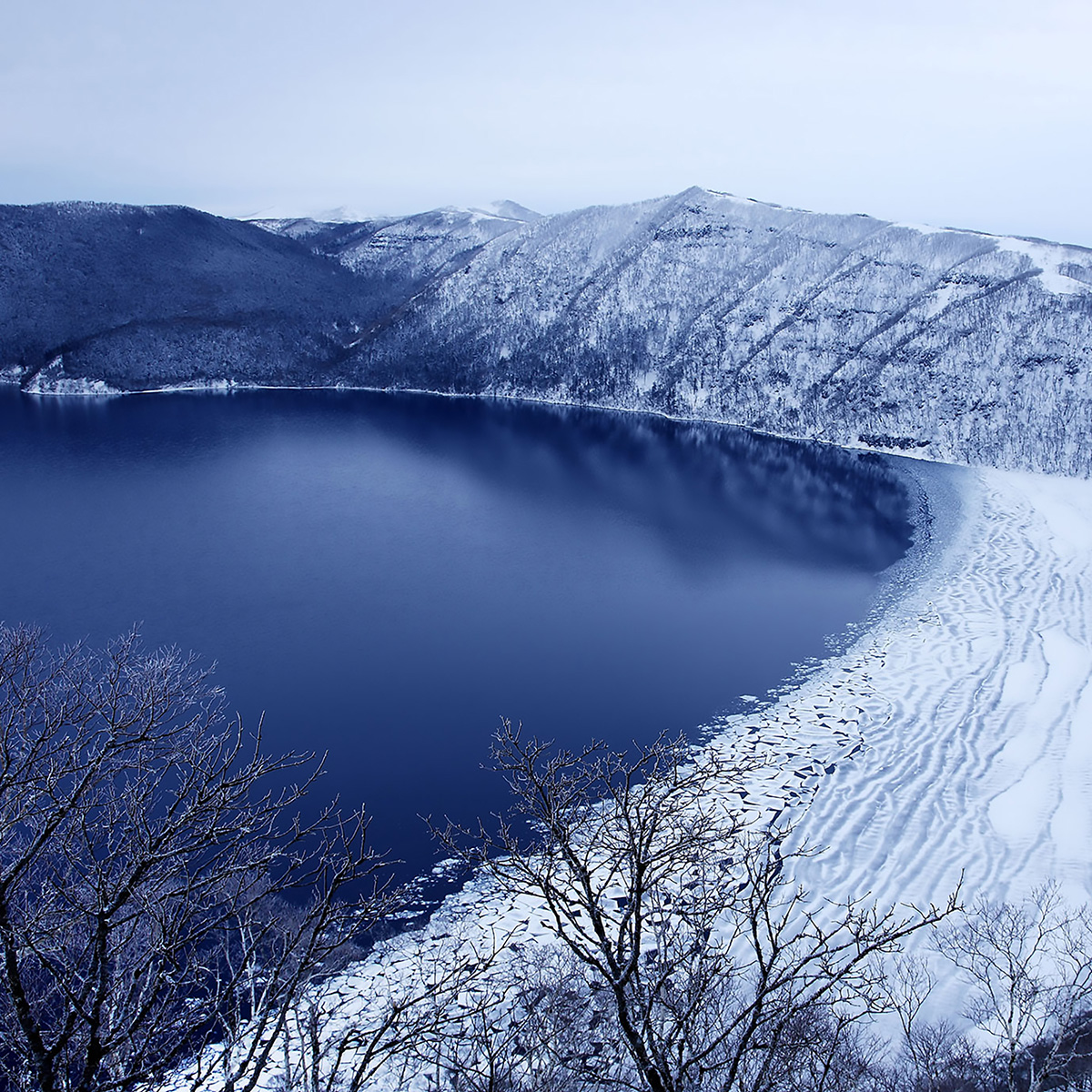 撮影地:北海道摩周湖 凍った湖面の模様が美しい。